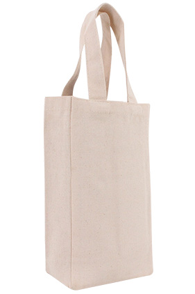 Heavyweight. Holds 2 750ml bottles or one large one. 3" bottom and side gusset. Soft, padded center divider that folds flat. Self-fabric handles. Non-branded label/tag.