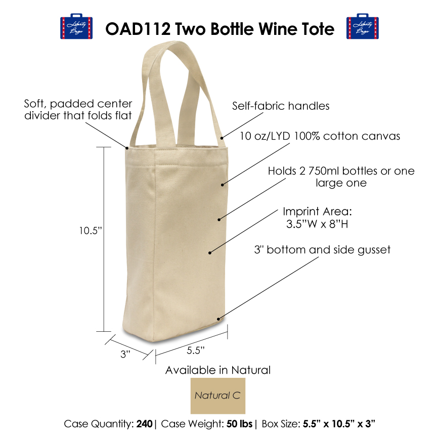 New OAD112 Liberty Bags Two Bottle Wine Tote