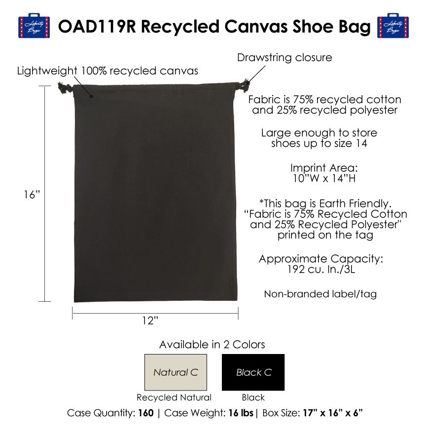 New OAD119R Liberty Bags Double Cinch Recycled Canvas Shoe and Accessory Bag